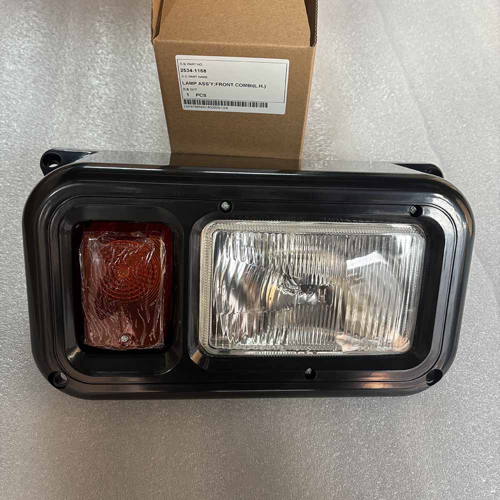 Part number 2534-1168 refers to a Front Combination Lamp Assembly (Left Hand) primarily used for Doosan and Daewoo wheel excavators. It is a multi-function light unit typically including headlights and turn signals.